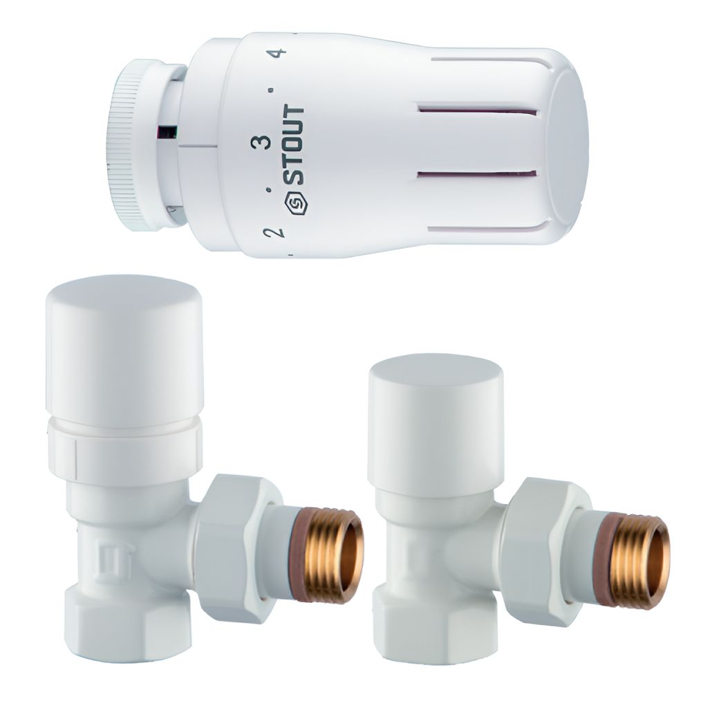 Комплект клапанов термостатических STOUT Design белый, угловой 1/2