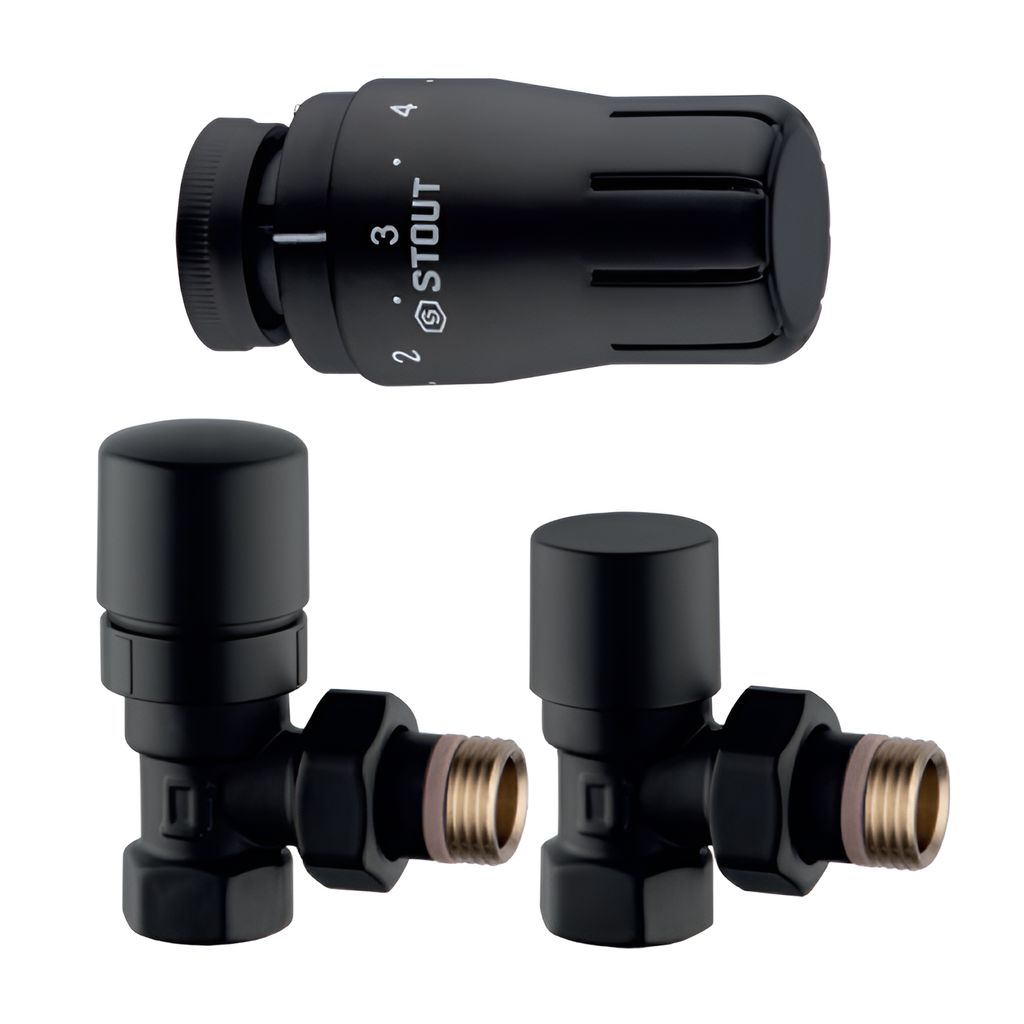 Комплект клапанов термостатических STOUT Design черный, угловой 1/2