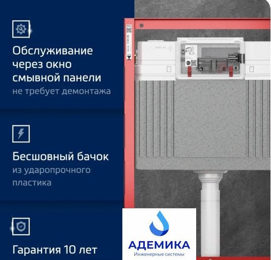Смывной бачок объемом 10 л, выборочный слив большого (4,5/6/7,5/9 л) или малого (3 л) объема воды