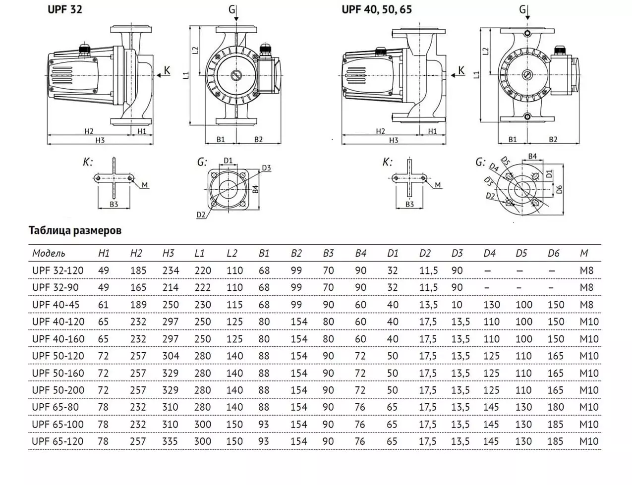 Циркуляционные насосы серий UPC, UPC3 — с резьбовым присоединением. Циркуляционные насосы серий UPF, UPF3 — с фланцевыми присоединениями и условным проходом от DN32 до DN65. Корпус насосов серий UPC3, UPF3, UPF, UPF3 изготовлен из чугуна.