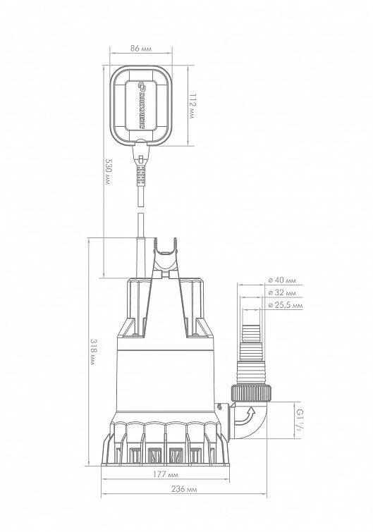 - Насос оснащен электрокабелем с штепсельной вилкой, длина 7 метров. Категорически запрещается использовать кабель электронасоса для подвешивания и переноса.