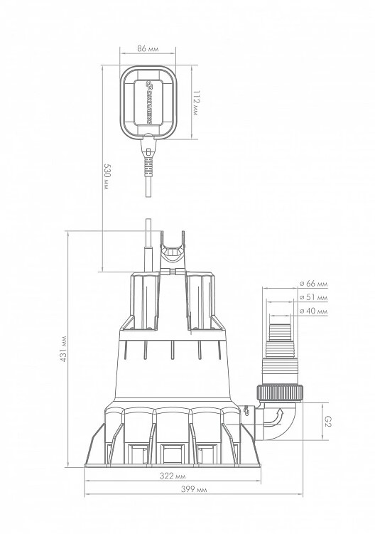 - Насос оснащен поплавковым выключателем, который автоматизирует работу насоса. Его необходимо отрегулировать на определенный уровень воды для включения и выключения насоса, изменяя длину кабеля поплавка в выемке на корпусе/рукоятке.