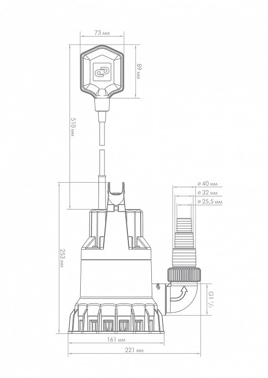 - Насос оснащен электрокабелем с штепсельной вилкой, длина 5 метров. Категорически запрещается использовать кабель электронасоса для подвешивания и переноса.