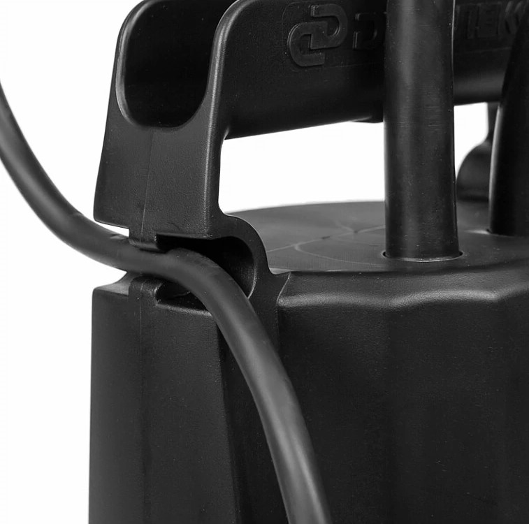 - Насос оснащен поплавковым выключателем, который автоматизирует работу насоса. Его необходимо отрегулировать на определенный уровень воды для включения и выключения насоса, изменяя длину кабеля поплавка в выемке на корпусе/рукоятке.