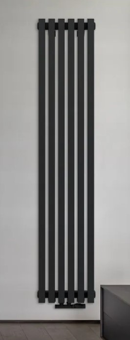 Дизайн радиатор вертикальный КЗТО (KZTO) QUADRUM 40 V 1750-4 секции, центральное нижнее подключение, RAL 1T103S9005 чёрный матовый муар